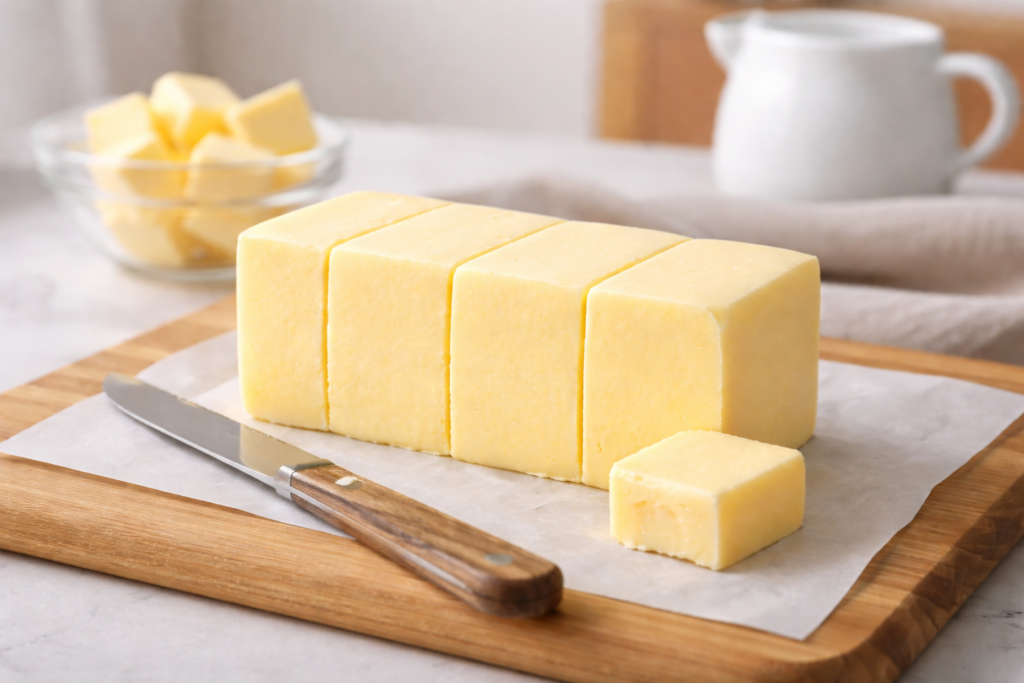 - Mantequilla a temperatura ambiente: ideal para repostería